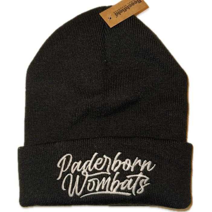 Die schwarze Beanie mit dem Paderborn Wombats-Logo überzeugt durch ihr schlichtes, zeitloses Design und angenehmen Tragekomfort. Sie sitzt bequem und eignet sich ideal für Alltag und Freizeit.